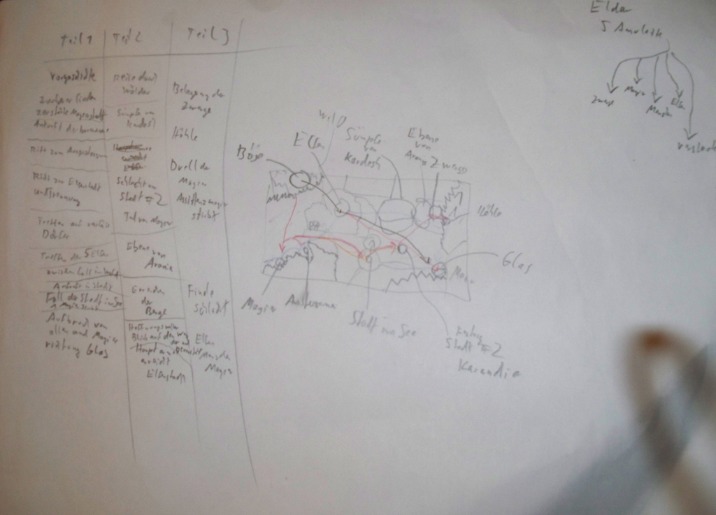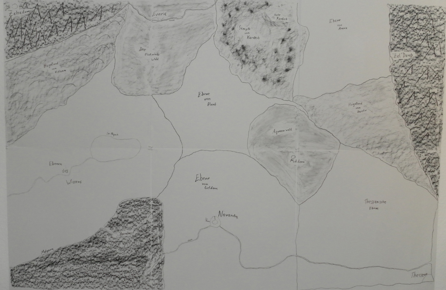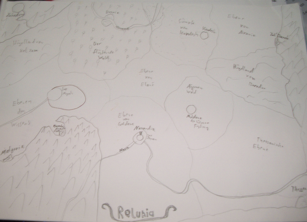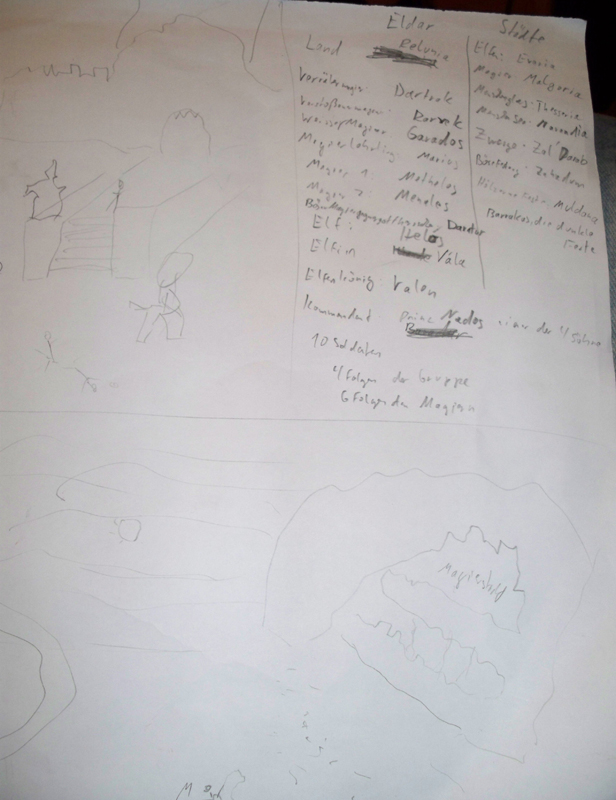 Der allererste Anfang war ein einfaches Din-A4 Blatt. Hier gab es eine sehr spartanische übersicht der Geschichte, sowie eine grobe Zeichnung der Landkarte.